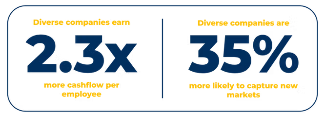 A diverse workforce can benefit the bottom line. Did you know diverse companies are 35% more likely to outperform their competitors? Companies that embrace diversity tend to be more profitable because different perspectives and experiences lead to fresh ideas and solutions that can drive growth. Diverse companies also connect better with diverse clients and top talent, which is critical to organizational success.