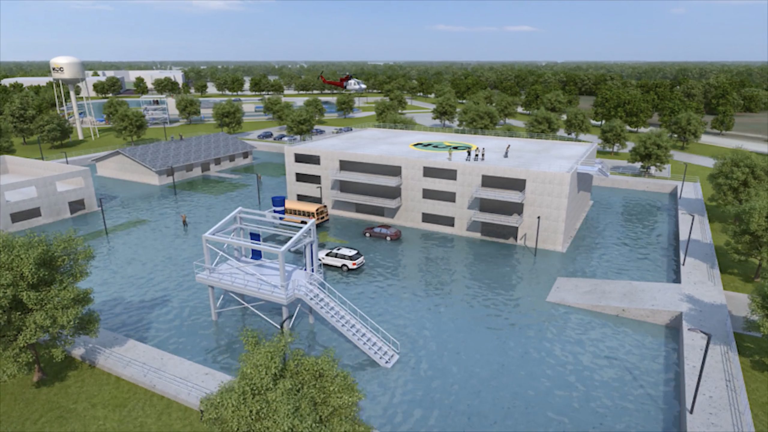 Located near HCC’s campus in northeast Houston, the $25 million, 75,000-square-foot facility will feature a large swift-water channel, 25-acre dive and powerboat and flatwater training pond, and an urban flood simulator to allow rescue personnel to train in flooded streets and buildings. Massive pumps will move a high volume of water into the “streets and buildings,” simulating a flood event in a controlled environment in order to maintain participants’ safety. It will have the capacity to train 3,000 – 4,000 first responders per year.